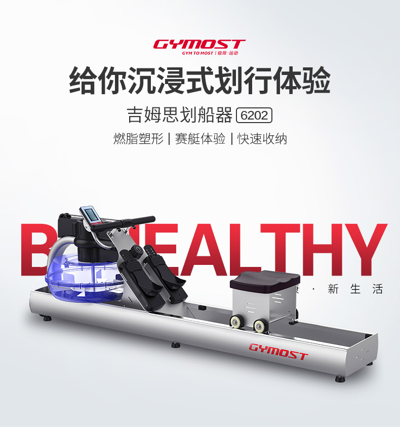 吉姆思(GYMOST)划船器 家用水阻划船机 静音划艇商用健身器材风阻液阻划水器6202